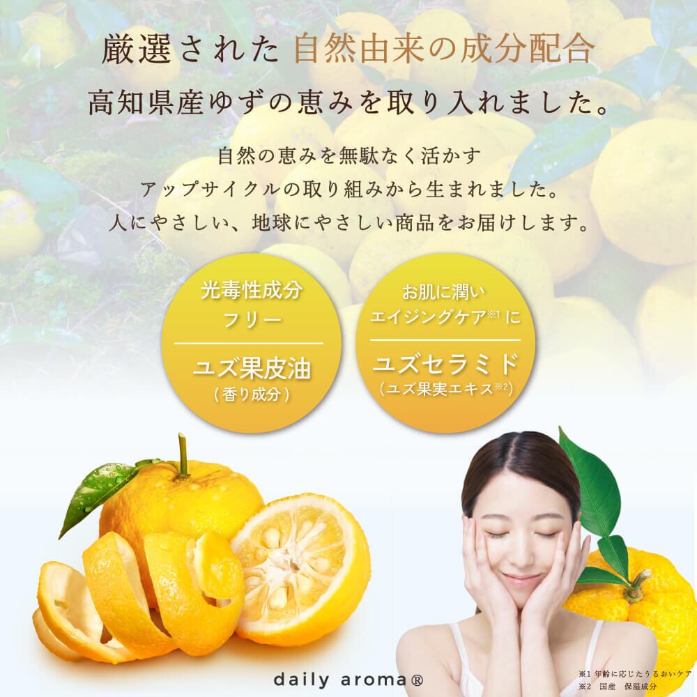 ユズ精油を配合した、やわらかく澄んだ香りも魅力のひとつ。
